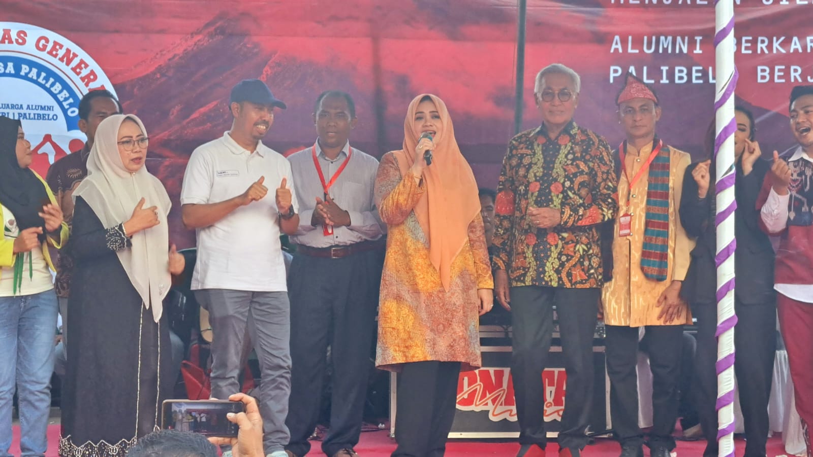 Ketua Ikatan Alumni SMPN 1 Palibelo AKBP Ruslan dan jajaran pengurus menyampaikan ucapan terima kasih atas kehadiran Bupati dan Wakil Bupati dan mendaulat untuk menyumbangkan lagu dalam reuni tersebut.