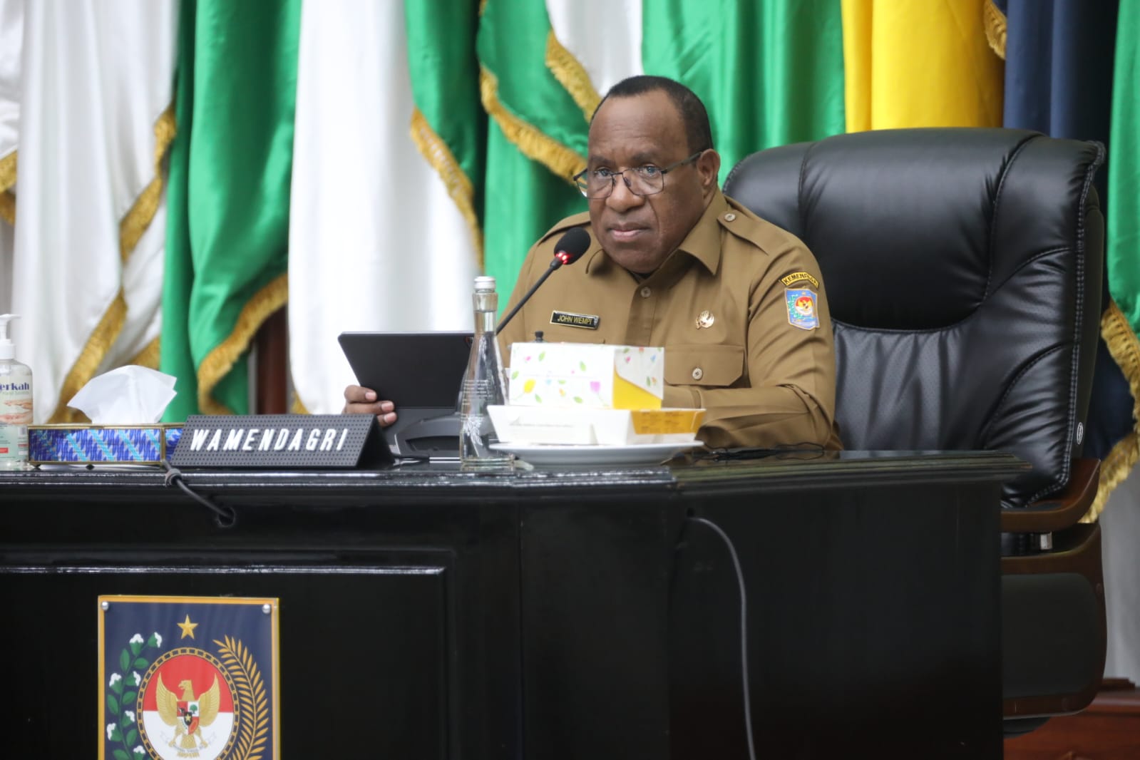 Hal itu disampaikan Wakil Menteri Dalam Negeri (Wamendagri) John Wempi Wetipo saat memimpin Rapat Koordinasi Pusat dan Daerah (Rakorpusda) terkait dengan progres persiapan percepatan pembangunan sarpras di empat DOB Papua. Rapat tersebut berlangsung secara hybrid dari Gedung Sasana Bhakti Praja (SBP) Kantor Pusat Kemendagri.