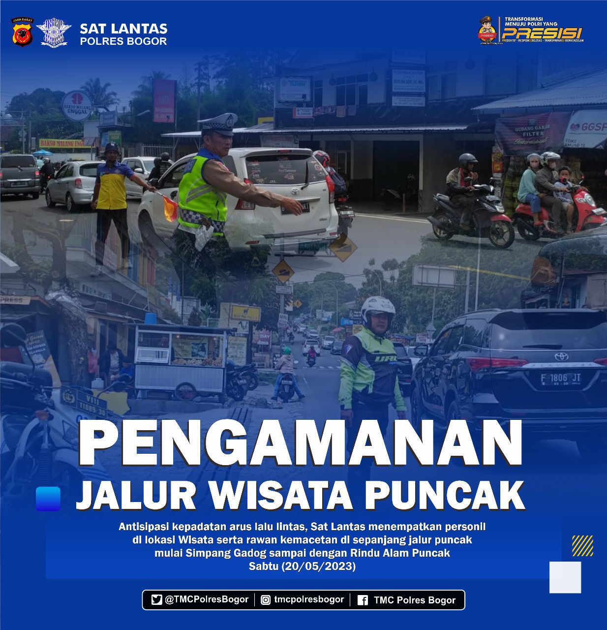 “Hari ini kami menyiagakan personel lalu lintas di Sepanjang Jalur Puncak mulai dari Simpang Gadog Sampai dengan Rindu Alam untuk mengantisipasi kemeriahan kendaraan yang akan naik dari arah Jakarta menuju puncak dan sebaliknya arah turun dari puncak menuju Jakarta, agar tidak terjadi penumpukan kepadatan lalu lintas,” kata Kasat Lantas Polres Bogor AKP Dicky Pranata.