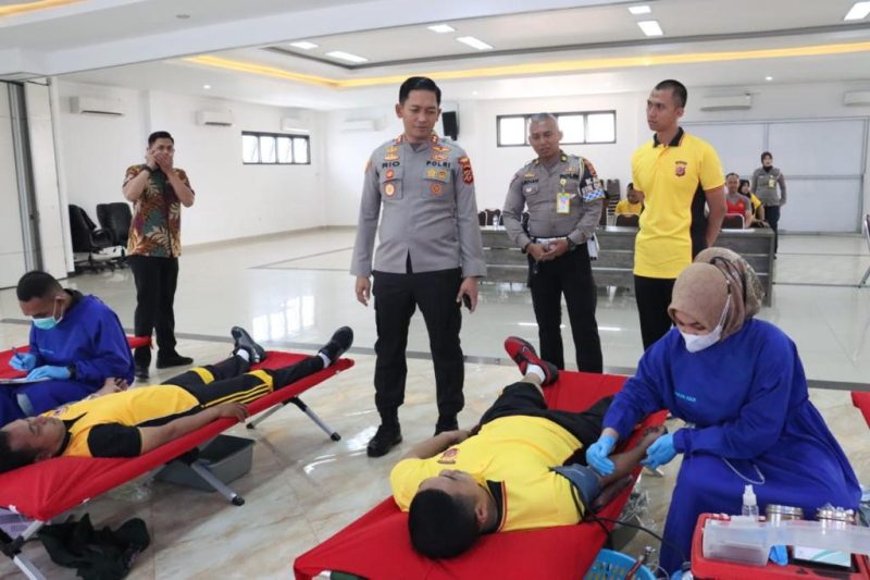 Kapolres Bogor AKBP Rio Wahyu Anggoro S.H., S.I.K pun secara langsung memantau kegiatan donor darah tersebut. yang mana kegiatan donor darah tersebut pun diawali dengan proses pendaftaran dan proses pemeriksaan kesehatan oleh tim medis, selanjutnya para calon pendonor yang dinyatakan memenuhi syarat langsung bisa mengikuti donor darah.