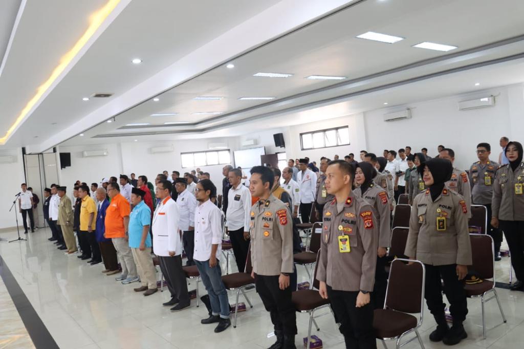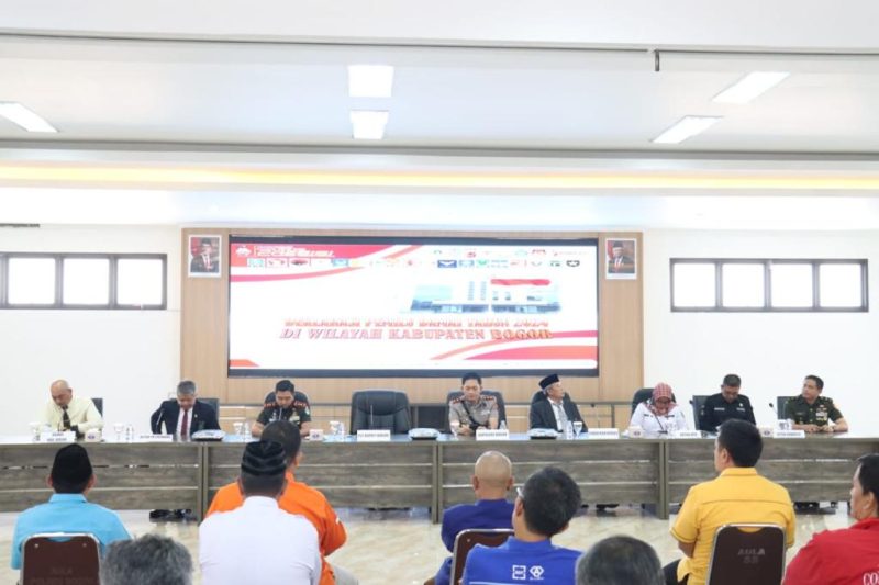 Cibinong, internewstoday.com – Pihak Kepolisian Polres Bogor bersama Forkopimda Kabupaten Bogor gelar deklarasi damai jelang pemilu 2024 di Aula Sanika Satyawada Polres Bogor. Pada Rabu, (16/08/2023).