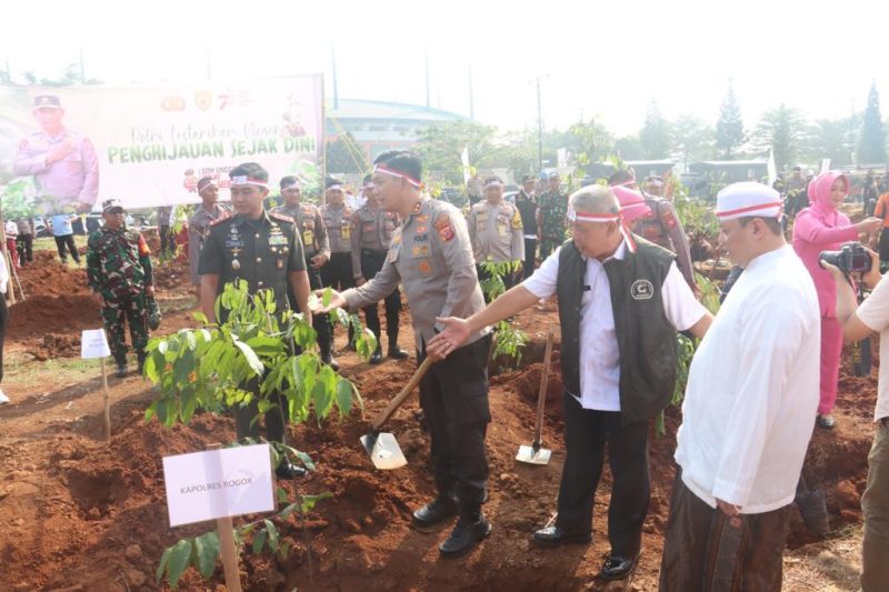 Dengan komitmen untuk ikut serta dalam menjaga keberlanjutan alam tersebut, Personil Polres Bogor bersama Forkopimda Kabupaten Bogor, PJU, Ketua Bhayangkari Serta Pengurus Cabang Bogor, Pelajar, Pramuka dan Relawan yang turut serta dalam kegiatan penanaman pohon dengan tema Polri lestarikan negeri, penghijauan sejak dini tersebut, melakukan penanaman sebanyak 8000 pohon di seputaran Stadion Pakansari dan di 32 Polsek Jajaran Polres Bogor.