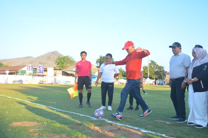 Turnamen diawali tendangan perdana oleh Wakil Bupati yang dilanjutkan dengan pertandingan eksibisi Tim antara All star Bolo dan Tim All star Woha. (Amr).