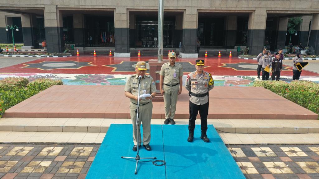 Walikota Jakarta Barat, Uus Kuswanto, memimpin langsung dalam apel gelar pasukan dengan didampingi oleh Wakapolres Metro Jakarta Barat, AKBP Sarly Sollu.
