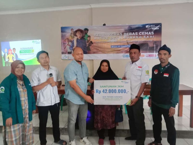Leuwiliang, internewstoday.com – Kacab BPJS Ketenagakerjaan Bogor bersama Leuwiliang, Sosialisasi Sekaligus Simbolis Memberikan Bantuan Santunan Kematian Kepada Warga Masyarakat Desa Gunung Sari, Kecamatan Pamijahan, di Aula Kantor Desa Gunung Sari Pada hari Rabu tanggal 25 Oktober 2023.