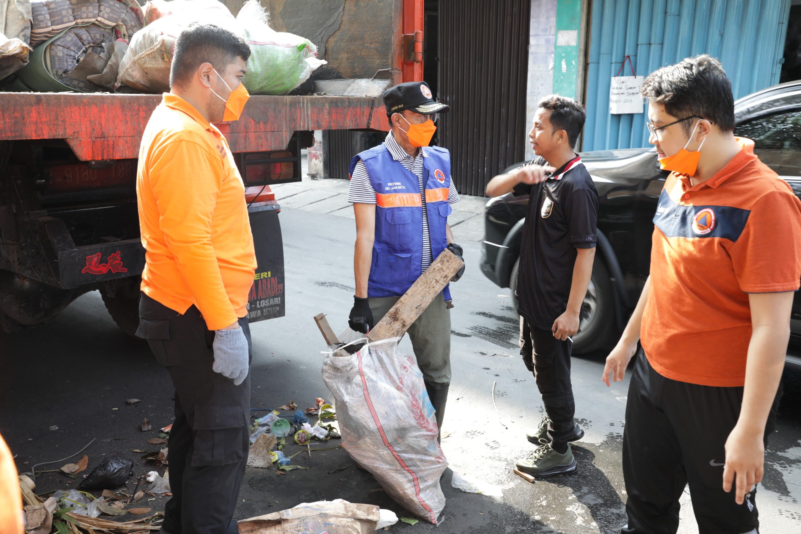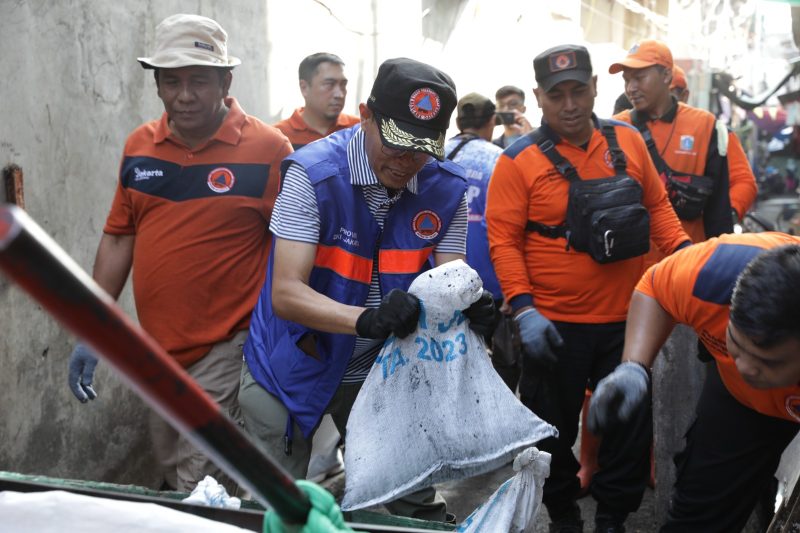 Para personel berkolaborasi dengan pihak RT, RW, PPSU, dasawisma, karang taruna, dan seluruh elemen masyarakat lainnya di lokasi pembersihan. BPBD DKI turun ke lapangan dengan membawa ribuan karung dan ratusan sapu serta cangkrang.