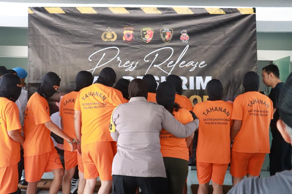 Dalam Kasus Ini Sat Narkoba Polres Bogor Berhasil Menangkap 14 Orang Tersangka Yang Terdiri Dari (13 Orang Tersangka Laki – Laki Dan 1 Orang Tersangka Perempuan). Yang Berinisial Laki-Laki : (AA), (MK), (MS), (SP), (NZ), (SR), (MN), (IK), (AB), (SW), (KH), (DM), (FA), (ST),Dan (DM) Yang Merupakan Perempuan pekerjaan ibu rumah tangga.