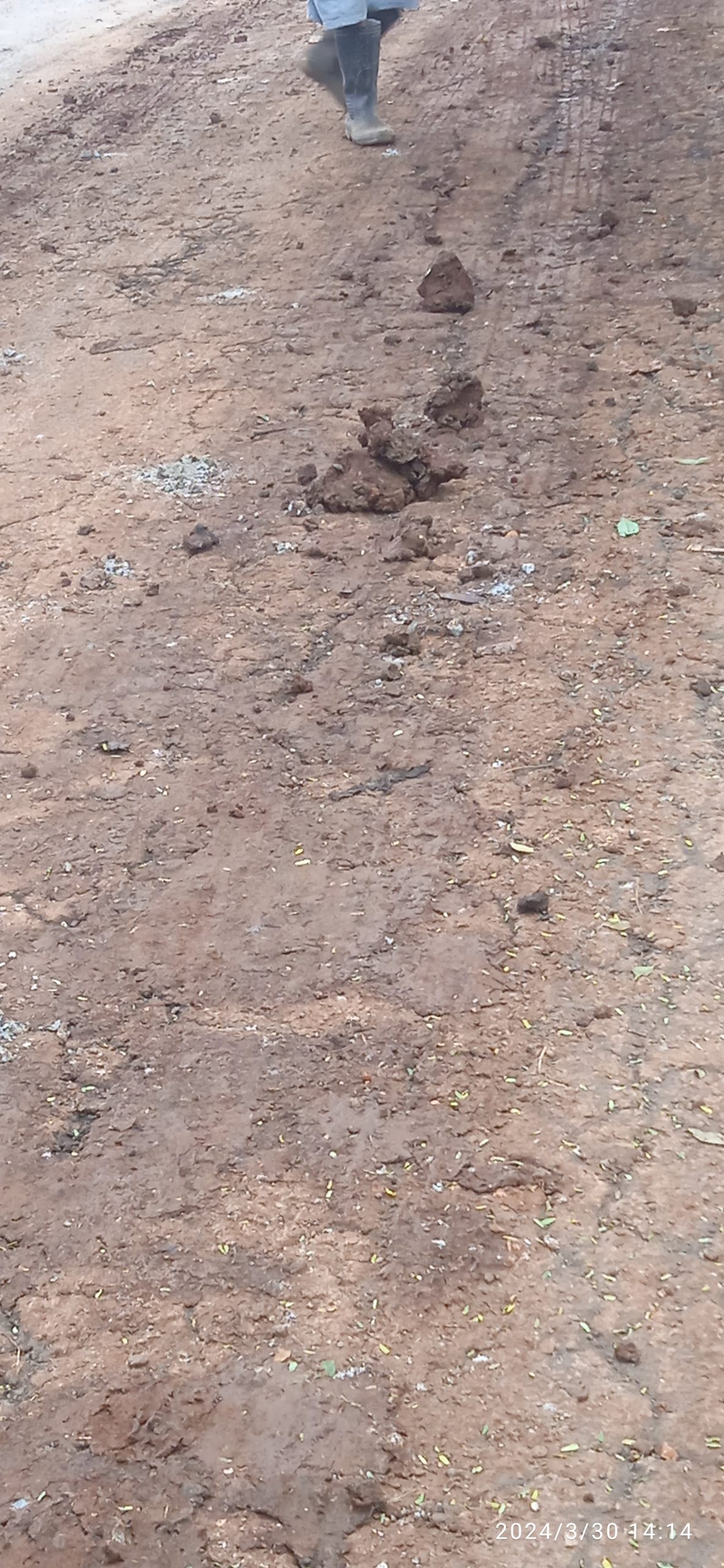 Terlihat pada badan jalan tegar beriman pada jalur lambat tanah merah berserakan di jalan. Menurut salah satu pekerja, mamat sudah dua hari pekerjaan ini di lakukan, tanah tersebut dari Proyek Pembangunan gedung baru kantor Dinas Pemberdayaan Perempuan, Perlindungan Anak dan Keluarga Berencana (DP3AKB).
