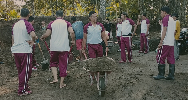 Kapolres Lombok Tengah AKBP Iwan Hidayat, SIK melalui Kapolsek Pringgarata AKP I Nyoman Daweg Menyampaikan,” pihaknya bersama personel Koramil Pringgarata dibantu pemerintah desa dan masyarakat melaksanakan gotong royong penimbunan jalan penghubung antar dusun, selain itu jalan tersebut juga akan digunakan sebagai jalan usaha tani bagi masyarakat,” ujarnya